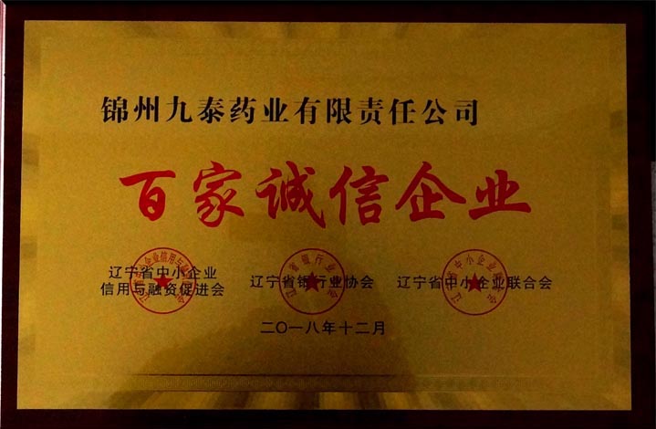 公司被省中小企業(yè)信用與融資促進(jìn)會(huì)、省銀行業(yè)協(xié)會(huì)、省中小企業(yè)聯(lián)合會(huì)授予遼寧省“百家誠(chéng)信企業(yè)”榮譽(yù)稱(chēng)號(hào)。