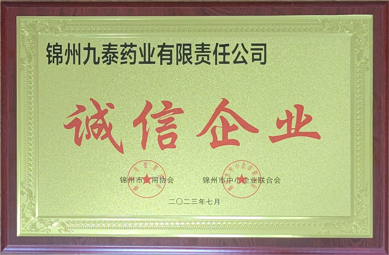 7月17日,在錦州市中小企業(yè)聯(lián)合會(huì)、錦州市信用協(xié)會(huì)誠信會(huì)員企業(yè)表彰大會(huì)上,錦州九泰藥業(yè)有限責(zé)任公司被命名為“誠信企業(yè)”榮譽(yù)稱號(hào)。